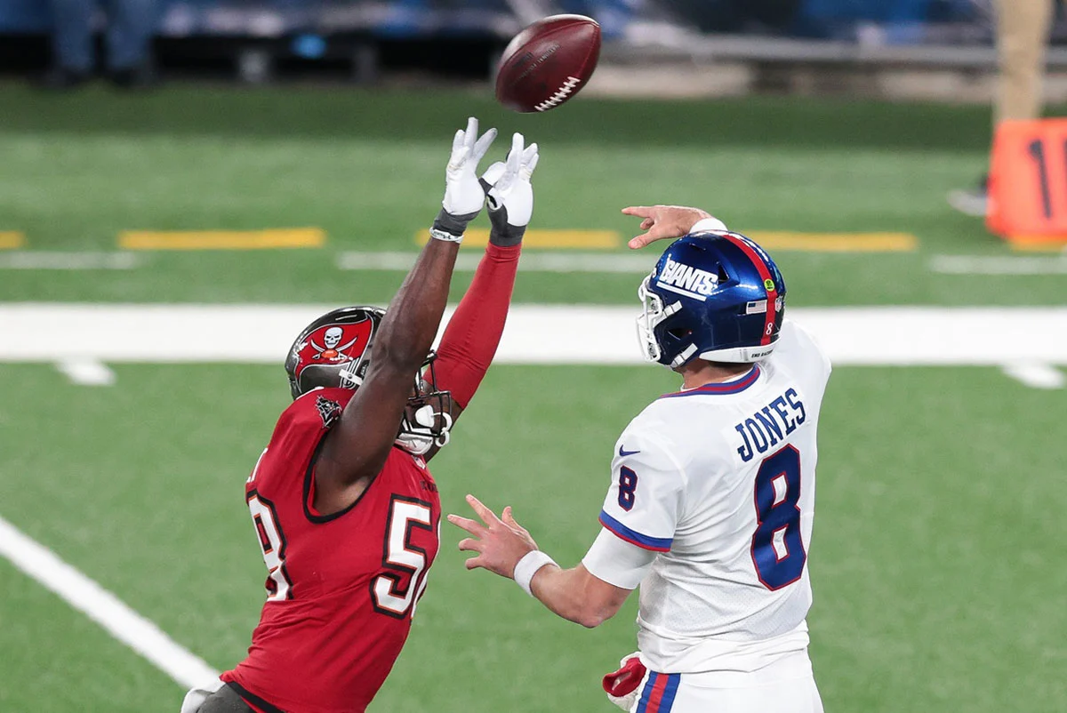 While Barrett didn’t record a sack, his two quarterback pressures were key in forcing Jones to throw those interceptions. Meanwhile Jason Pierre-Paul did get to Jones in his return to New York, notching his 6.5 sack of the season, which leads the Bucs. Pierre-Paul was tied for the team lead with seven tackles along with Winfield, cornerback Jamel Dean, who had an off night, safety Jordan Whitehead and linebacker Devin White.