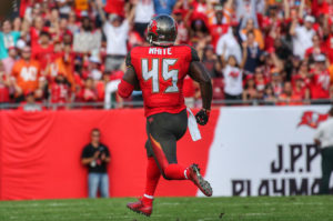 His four opponent fumble recoveries on the season tied Cecil Johnson (1977) for the most by a rookie in team history, while his three forced fumbles are tied for the second-most. In addition, White’s 91 tackles on the season are the third-most by a rookie in team history, trailing only Pro Bowl linebackers Lavonte David (139 in 2012) and Kwon Alexander (93 in 2015). White is the only rookie in team history with multiple defensive touchdowns in a season.