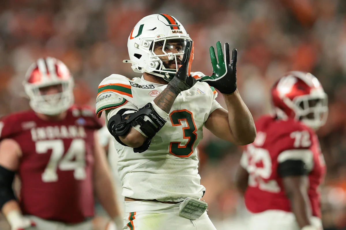Miami edge rusher Akheem Mesidor – Photo by IMAGN Images – Sam Navarro