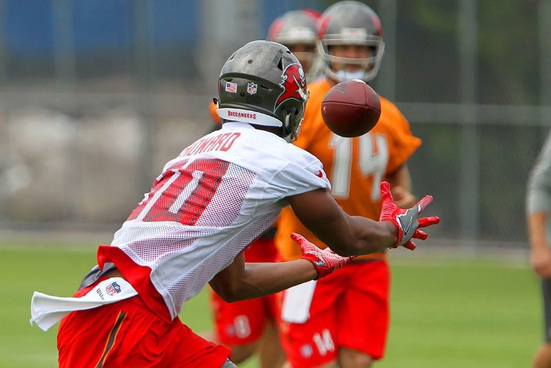 Howard, the Bucs’ first-round pick out of Alabama, didn’t see many passes come his way during scrimmages and incumbent pass-catching tight end Cameron Brate was the first to run routes in each drill Thursday.